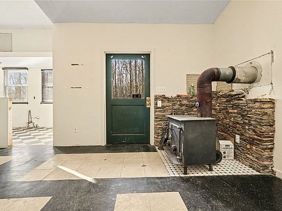 The spacious kitchen flows seamlessly into the dining room, providing plenty of room for gathering and entertaining. A cozy living room features a wood stove—ideal for cool mountain evenings. A dedicated utility/laundry room with sink adds convenience and functionality. Both bedrooms share a centrally located hall bath with tub.