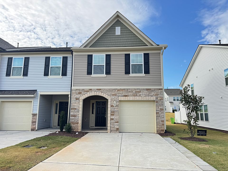 Build in 2023, end unit townhome located in a desirable neighborhood. With one car garage, the home features an open concept kitchen with white cabinets, granite counter tops and all stainless steel appliances. LVP throughout the 1st floor and all baths. Large bright family room and dining area. Upstairs you will find 3 huge bedrooms, laundry room and 2 full baths. Master bedroom has walk-in closet. Master bath has dual vanities. Convenience location easy access to NC-42, NC-70 and I-40. Refrigerator, Washer, and Dryer Included! Available Now
