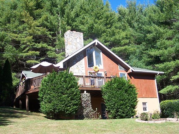 Enjoy the best of both worlds in this immaculate home with a private setting, yet only minutes from local amenities. Located across from The New River, just off a state-maintained gravel road, the buyer of this property also receives a 1/25th interest in Tract #18, which fronts The New River. This bonus comes via a .74 ac lot that is exclusive to owners in this subdivision. The home itself offers many desirable features. On the top floor, you find the kitchen/dining area with a stone wood-burning fireplace. 2 Bedrooms with a Jack n Jill bathroom, Double Doors leading to the extensive decking, Hardwood Floors, and lots of windows to let in plenty of light. The bottom floor has the huge Great Room, Master Bedroom and Bath, Laundry Area, and Storage Room. This entire property has been beautifully and lovingly decorated & landscaped inside out. It will remind you of something you see in magazines. This property is a must-see!