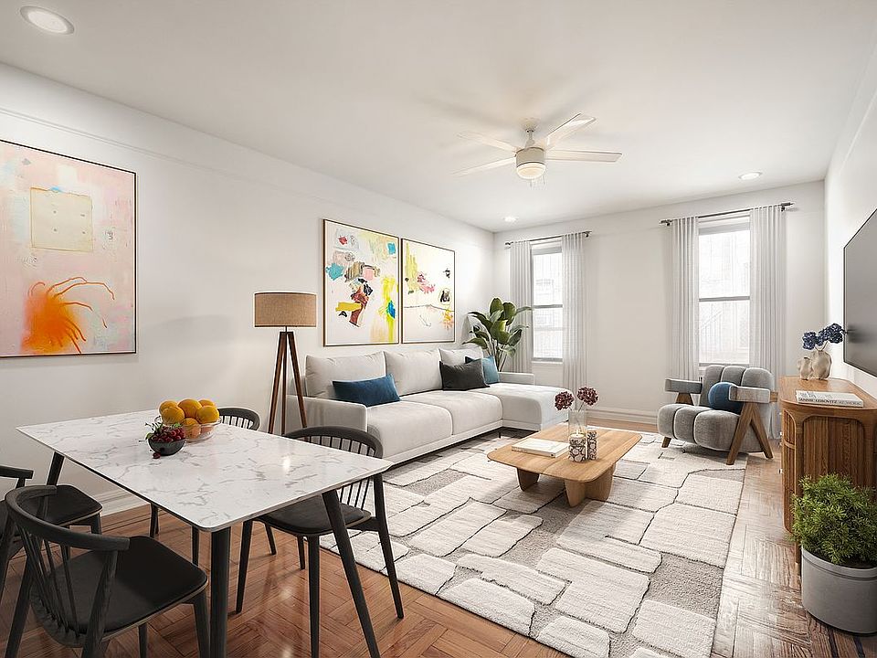 Private foyer entry, optimal closet storage and original arches come together in this streamlined layout that lends itself to work-from-home, but also to cooking, dining and the rebirth of home entertaining. Big windows let light stream into all rooms, while generous square footage spans separate kitchen and living areas. The unit boasts very low monthly maintenance. Just around the bend from Inwood Hill Park and only a block from Inwood's year-round Saturday farmers' market aside Isham Park, 60 Cooper enjoys serene surroundings within very close proximity to public transit. With its stunning Art Deco welcome, backyard garden patio, bike room and fitness room, it is arguably the best beloved building in all of Inwood.