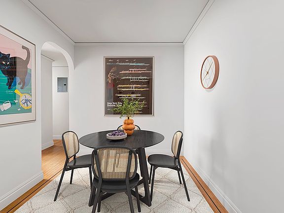 Private Art Deco foyer entry, optimal closet storage and original arches come together in this streamlined layout that lends itself to work-from-home, but also to cooking, dining and the rebirth of home entertaining. Big windows let light stream into all rooms, while generous square footage spans separate kitchen and living areas. The unit boasts very low monthly maintenance. Just around the bend from Inwood Hill Park and only a block from Inwood's year-round Saturday farmers' market aside Isham Park, 60 Cooper enjoys serene surroundings within very close proximity to public transit. With its stunning Art Deco welcome, backyard garden patio, bike room and fitness room, it is arguably the best beloved building in all of Inwood.