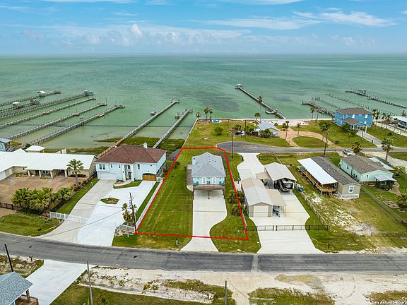 Beautiful, newer home (2019) with breathtaking views of Copano Bay & Salt Lake! This 3 bed/2bath home has been meticulously cared for & is being sold FULLY FURNISHED in Rockport! Currently sleeps 6 comfortably with three queen beds. All decor, appliances, and furnishings will stay w/home! The home boasts an open living & kitchen concept with vaulted ceilings & water views! The formal dining area has a gorgeous stacked stone fireplace. Large kitchen with breakfast bar, island, solid wood cabinets, stainless steel appliances, and stone counters. Master bathroom has a walk in shower! Sip your beverage of choice on the front or back porch and watch the sunset over Copano Bay! Large yard that is partially fenced. Located close to boat ramps/parks & a short drive to restaurants, grocery stores, downtown, & the Rockport Beach! Short term rentals are allowed so enjoy your turnkey beach house or start your own vacation rental!