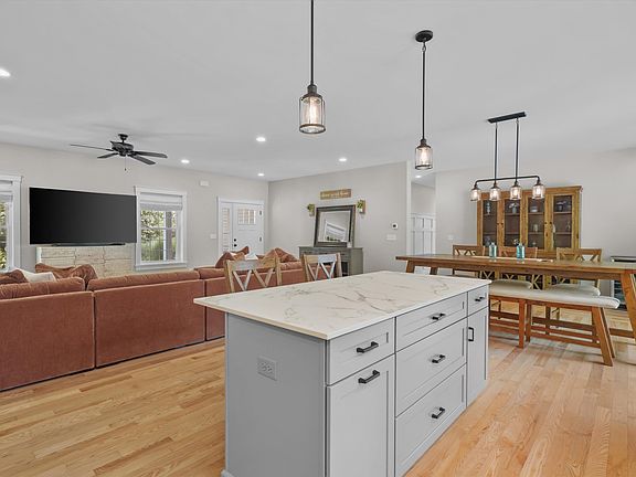 Welcome to 60 Copp Drive, offering single-level living at its finest. From the moment you arrive, the long tree-lined driveway with granite posts sets the tone-peaceful, private and inviting. Built just six years ago, this home features a bright open-concept layout. The kitchen is designed for entertaining with a center island, Jenn-Air stainless steel appliances and a spacious pantry, flowing seamlessly into the dining area and expansive great room with a gas fireplace. The home includes three bedrooms, highlighted by a stunning primary suite with a walk-in closet and a beautifully appointed bathroom with double sinks and a luxurious walk-in shower. An oversized two-car attached garage provides everyday convenience and includes an EV charger. The lower level is a blank canvas, perfect for finishing into additional living space, a home gym, teen suite, or game room. Step outside to your backyard oasis with an outdoor kitchen, pergola, hot tub, patio, and side porch, all surrounded by mature landscaping and nature. Pride of ownership shines throughout with thoughtful upgrades inside and out. Located in the desirable town of Fremont, this exceptional home is close to shopping, Route 101, the Seacoast, and Manchester. See disclosure for a list of upgrades.