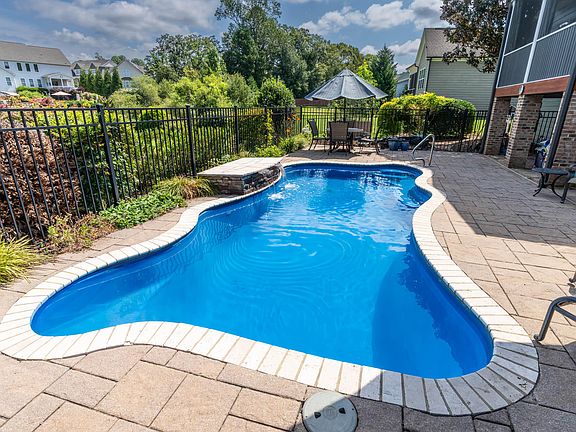 Enjoy the perfect blend of comfort, style, and outdoor living in this stunning former model home—loaded with upgrades and designed for today's lifestyle. A private saltwater pool and peaceful neighborhood pond set the stage for a truly unique backyard oasis, complete with lush landscaping, beautiful slate steps front and back, and wrought iron double fencing enclosing both the pool and yard with secure locking gates for safety and privacy. Inside, the main-level owner's suite pairs beautifully with a convenient guest room and full bath. The chef's kitchen opens seamlessly to the family room and cozy fireplace, all highlighted by gleaming site-finished hardwoods. Every walk-in closet features custom-built wood shelving, bringing both function and luxury to everyday living. Upstairs offers thoughtful spaces including a Jack and Jill bathroom with two separate vanities, large walk-in closets in both bedrooms, and an expansive vaulted bonus room over the 3-car garage—a flexible space waiting to be finished to your needs. Additional upgrades include double trey ceilings, faux wood blinds throughout, and an oversized 3-car garage with plenty of room for vehicles, hobbies, and storage. Relax on the screened back porch overlooking your pool and pond—where neighbors say you'll even spot large fish ready for casting a line. All this is nestled within a quiet, friendly neighborhood known for stability and charm. With its thoughtful upgrades, spacious layout, and one-of-a-kind setting, this home is a rare find you'll be proud to call your own. Hurry—this one won't last!