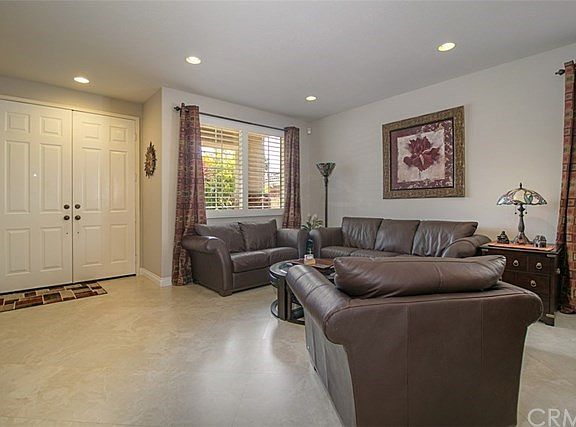 This entertainer's dream home with a stunningly remodeled kitchen can accommodate the biggest family gatherings. The giant DOWNSTAIRS MASTER BEDROOM off the entry area has great privacy and a vast master bath suite with dressing area, tub, separate shower and roomy walk-in closet. Everyone can relax in the living room after dinner or in the family room with fireplace located off the kitchen. Upstairs is a BIG! bonus/family room for every kind of fun kid game: pool table, foosball table, a couple sofas to play video games on a HiDef smart TV or throw out lots of sleeping bags for a kid's sleepover. Four additional big upstairs bedrooms adjoin the bonus room, with a full bath and an extra 3/4 shower bath on opposite sides of the room. But the kitchen! Remodeled with rich cabinetry that has soft-close drawers, stainless appliances, porcelain tile flooring in a desert-sand shade, and a wine fridge, the huge center island, counters and full backsplash are topped with elegant marbled granite. Entertain, you say? As you step into the very private backyard you're greeted by the sound of a tall stackstone waterfall. Off to one side is a barbecue station with burner and stainless sink, and you can relax on the opposite side of the yard in front of the outdoor fireplace or under the retractable awning. For flower lovers or those who want an herb garden, there's ample space to plant, too. Add in a 3-car garage for all the toys, NO association dues and LOW Mello-Roos, and yo