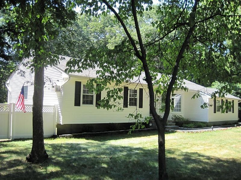 Lovely, completely updated 3 bedroom, 2 full bath Ranch. Features entry hall with slate floor, Living room with wood floors and French doors to Bi-Level deck, Dining room with French doors to deck, Den with fireplace and French doors to deck. Hardwood Floors, Flat 1/2 acre with fenced rear yard. Must see to Appreciate. Just move in. Call Jim FIRST FLOOR: Entry Foyer: Slate floor and Coat closet Eat In Kitchen: Recently updated, Granite Tops & wood Floors Formal Living Room: Hardwood floors & French Doors to rear deck Formal Dining Room: Hardwood floors & French Doors to rear Deck Family Room: Vaulted ceilings, Electric Marble Fireplace, hardwood floors & Sliders to Deck Hall Bath: Banjo Countertop, Granite floor, full tiled walls & Jacuzzi style tub Master B/R & Bath: Wood Floors & Full Bath recently updated w/full tiled walls & shower with Spa fixtures 2nd & 3rd B/R: With wood floors Garage: 1/2 car, attached with interior access, finished area includes Home Office and Laundry w/Maytag Neptune washer and Maytag Drying Closet REAR YARD Large Bi-Level Deck: Large private yard with slider to Den, & French doors to D/R & L/R