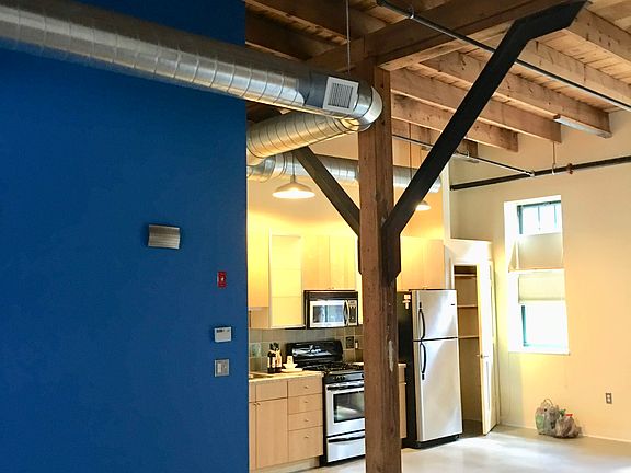 Spacious updated one bed top floor unit available at the Spencer Lofts in Chelsea. One outdoor parking space included, central heat and AC, laundry in-unit, small private balcony off bedroom, large patio near entrance, and expansive views from shared roof deck. 1 year lease or longer preferred, tenants must qualify at 625 credit score or higher, pass a background check, and provide references for current employers and landlord. No smoking of any type allowed. One cat allowed. First month's rent, security deposit, and broker's fee due at signing. Unit available Feb 1st 2023. Landlord pays for water. Tenant is responsible for electric and gas bills. Landlord pays for water. Tenant is responsible for electric and gas bills. First month's rent, security deposit, and one month's broker fee due at lease signing. No smoking or vaping of any type allowed. One cat allowed at an additional fee of $30 per month.
