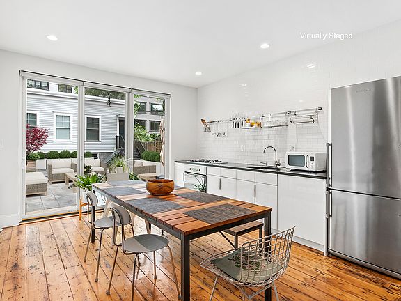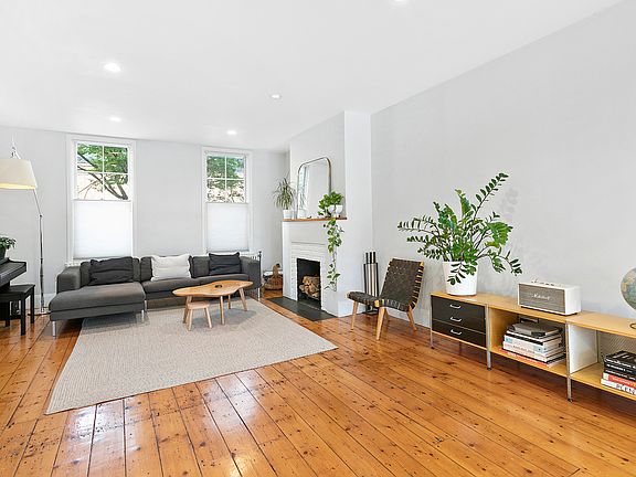 The townhouse that you have been waiting for. This Greenpoint gem offers everything 2020 has demanded of a home. Sitting on a 25 X 100 lot and with over 3100 SF of usable interior space and 1200 SF of exterior this 2 family townhouse with a twist brings open design, southern exposure, charming details and a rear house on the property that opens up a world of possibilities. The main house has two stories plus a finished basement. The open concept living area has a loft like feel with original wide plank flooring and a wall of windows that let light flood in. The working fireplace turns this into a cozy winter home. The open kitchen leads onto the huge patio area for indoor/outdoor living. There is a full bathroom on this floor and access to the finished windowed basement where there is ample room for an home office, home gym, storage and the laundry area in the rear. On the top floor which also has wide plank flooring there are two massive bedrooms, one with an expansive walk-in closet and the other with tree top views. The smaller third bedroom can also work as a den or home office. There is another full bathroom on this level. At the rear of the property is a wonderful separate one bedroom house. At approximately 500 Sf this one story + basement house with kitchen, bathroom and washer dryer offers a multitude of options. Its own entrance and access from the street means it can be used as a rental, a guest cottage, or a home office. Plentiful storage is available in the windowed basement. Conveniently located for the newly opened waterfront, restaurants, supermarkets and all of Greenpoint's retail, open markets and more. Easy access to the 7 and G trains and the East River Ferry. Has to be seen to be fully appreciated. Showing by appointment.