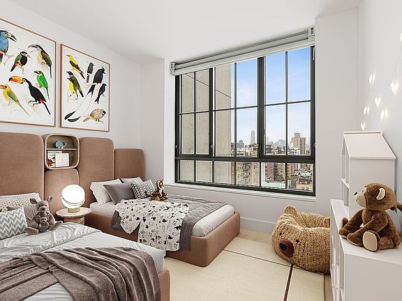 The apartment features oversized floor-to-ceiling casement-style windows, making this a sun-filled oasis with North, South, and Western corner exposures with a modern yet contemporary aesthetic throughout.