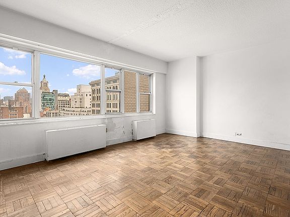 The apartment enjoys wide northern exposures, filling the space with natural light and showcasing sweeping views of the city skyline. With a spacious layout and solid bones, 18J is a rare blank canvas for buyers seeking to renovate and design a home entirely to their own taste. The apartment was originally configured as a windowed one-bedroom with ensuite bathroom.