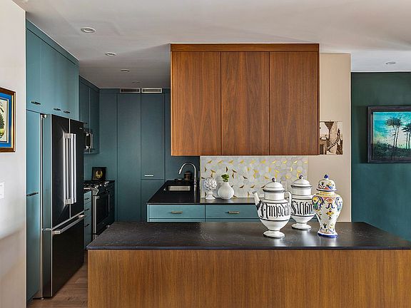 Step off the elevator, through your front door, and bam - those views hit you square in the retinas. The living room's nine-foot ceilings frame the city like a living postcard. Morning coffee or midnight wine? Both taste better when New York's lights flicker beneath you. Behind this entertaining space sits the kitchen - sleek Bosch appliances, stone countertops, and enough hidden storage to make Marie Kondo weep with joy.