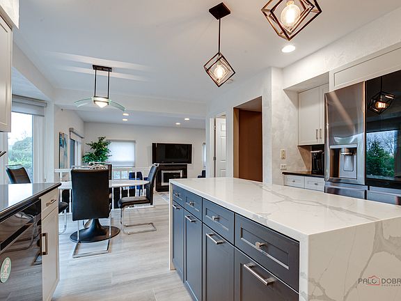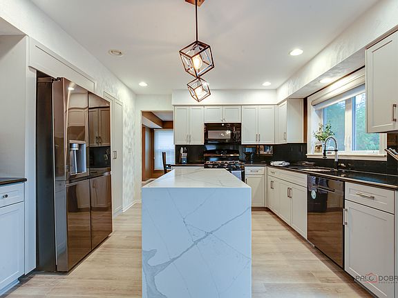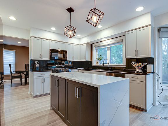 Located in the highly sought-after Stevenson High School District, this beautifully updated 4-bedroom, 2.1-bath home is move-in ready and meticulously maintained! Enjoy peace of mind with a new roof (2024), new main-level flooring (2024), and fresh paint throughout both levels (2024). Ideally situated within walking distance to Tripp Elementary School. The striking two-story entry welcomes you into a bright, open floor plan. The spacious living room and elegant dining room are perfect for entertaining. The updated kitchen showcases a large island with brand new Quartz countertops (2025), new appliances including refrigerator, dishwasher, and microwave (2025), a pantry closet, abundant newer cabinetry (2024), and a sun-filled eating area. The inviting family room features a cozy gas fireplace and access to the expansive deck and fenced backyard-ideal for gatherings and outdoor enjoyment. A laundry room and updated half bath complete the main level. Upstairs, the primary suite offers a grand double-door entry, tray ceiling, walk-in closet, and a spa-like ensuite with dual vanities, whirlpool tub, and separate shower. Three additional spacious bedrooms-each with new carpet (2024)-and a full hall bath complete the second floor. The finished basement adds even more living space with a large recreation room, wet bar, private office, and ample storage. Air conditioner and furnace 2025! Prime location near the train station, parks, shopping, and restaurants. Don't miss your chance to own this stunning, move-in-ready home-come see your dream home today!