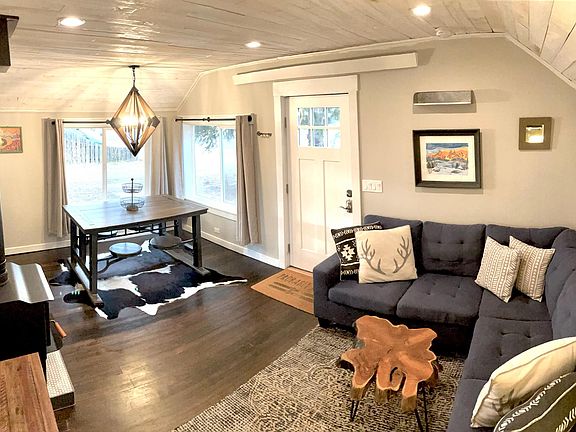 Completely renovated 536 sq ft One-bedroom Single Family Home in Downtown Driggs with hardwood floors. Wood burning stove, butcher block counters, subway tile backsplash, stainless steel appliances. Updated plumbing, venting, cove heating, new insulation in walls and ceiling, and electrical. New siding and Pella thermal windows. Spruce, Aspen, Lilacs, and Wild Rose adorn the yard.