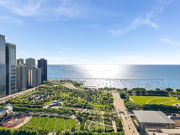 A rare opportunity, this luxurious 3-bedroom, 2.5 bath condo is on one of only two floors in The Legacy at Millennium Park that offers dramatic 12' 9" high ceilings. Huge floor-to-ceiling windows offer phenomenal north, south & east views of some of Chicago's best amenities -- Millennium, Maggie Daley, and Grant Parks, Monroe Harbor, Lake Michigan, Buckingham Fountain, the Museum Campus, and Soldier Field! Just under 2,000 sqft, this exceptional condo was just renovated and is among the most upgraded homes in the building. Features include brand new wood floors, motorized shades in every room, new designer lighting, new, neutral paint, a dry bar, and an east-facing balcony. Enjoy cooking and entertaining in the open chef's kitchen, complete with Woodmode cabinetry, SubZero and Bosch appliances, a built-in desk, and room for a table. The primary bedroom suite offers panoramic south views, a spacious walk-in closet, and a highly upgraded brand new en suite bath. One deeded garage space is included in the price; a second adjacent space is available for $50k.The Legacy is a 5-Star full-amenity building with 24-hour door/security staff, an indoor pool and spa, fitness center, two sky terraces with catering kitchens, an outdoor garden deck, a dog run, storage lockers, and a bike room. The building is connected via a sky-bridge to the University Club of Chicago; a convenient option (by membership) for dining, sports and exercise, spa, business meetings, and guest rooms. This location offers easy access to world-class museums, theater, music, dance, and dining, an express bus to the United Center, public transportation, and the expressway. Welcome home!