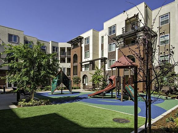 1st and Rosemary Family Apartments is a new construction, affordable multifamily apartment community located in San Jose, California. 1st and Rosemary Family offers 184 units for families consisting of one-,two- and three-bedrooms apartments in a 4-story, contemporary craftsman style building wrapped around a multilevel 300 stall parking garage. Amenities include a community room with kitchen, a computer room, a homework center, a fitness room, an outdoor playground, and beautifully landscaped courtyards with BBQ areas with comfortable seating.