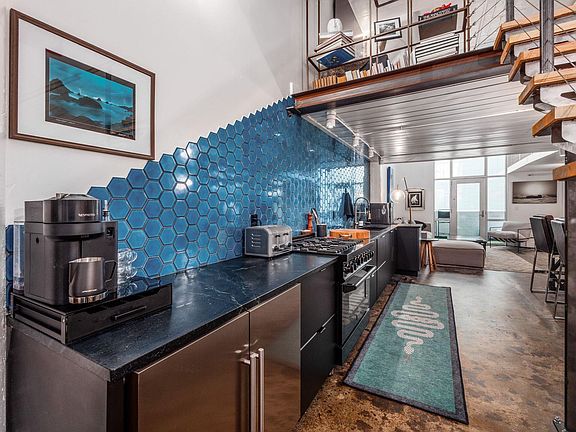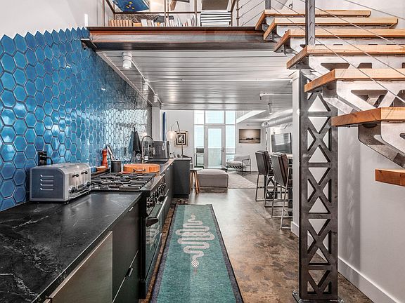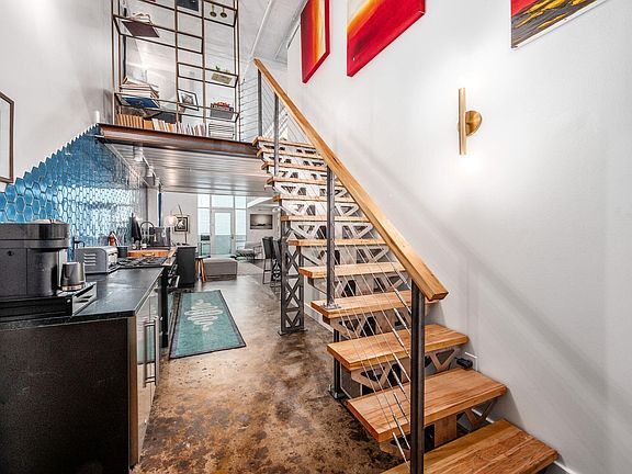Experience a one-of-a-kind modern industrial renovation unlike anything to come to market at Sixty Spring! Step inside to a dramatic first impression: soaring double-height ceilings and a striking steel staircase set the tone for the architectural elegance that follows. The kitchen is both functional and beautiful, featuring abundant cabinetry, 6-burner gas range, soapstone countertops, and designer tile backsplash. A built-in reclaimed wood dining table flows into the stunning two-story living area, where an expansive wall of windows opens to a private balcony. With bedroom suites on both levels, the layout offers flexibility and privacy. The entry level also features in-unit laundry for added convenience. Upstairs, a lofted living area with chevron-patterned floors leads to the luxurious primary suite—complete with a spacious walk-in closet and a spa-like bathroom. Additional highlights include a reserved garage parking space and an unbeatable downtown location. Convenient from the city's best dining and cultural destinations, you'll enjoy easy access to the High & Gay Street corridor, Arena District, Short North, and the scenic Scioto Mile!