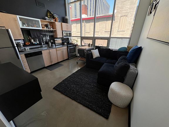 This modern industrial loft comes partially furnished and in the perfect location! High-end finishes and fixtures makes this 2-bedroom a beautiful place to live! This building has a barista machine on the first floor and a shared terrace on the 4th floor that has grills and lounge areas. Long parking space in underground garage included, with optional locking storage cabinet! Be a part of everything downtown has to offer, apply before this unique unit is gone! Gas and Internet is paid by owner, renter will pay water and electric. Dogs permitted but no pets preferred. No smoking.
