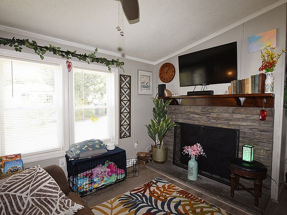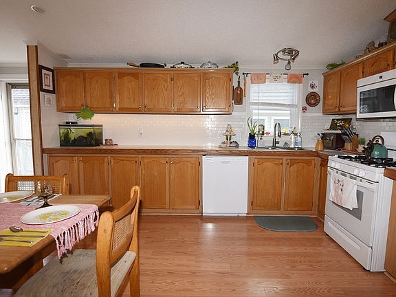 *back on market- financing fell through*Welcome to Hillcrest in Rockland! This 3-bedroom home offers an eat-in kitchen, cozy living room with fireplace, and a private main suite with bath and walk-in closet. Recent updates include new washer/dryer and dishwasher (2024, both with warranties), exterior shutters, lighting, bathroom ceiling repair, and interior doors. Prior improvements feature newer windows, fixtures, roof, tubs, furnace, AC condenser, doors, and shed. Set on a landscaped corner lot with storage shed. Pets allowed per park rules—move right in and enjoy!
