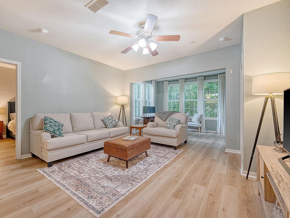 Imagine yourself living in a tastefully furnished, move-in ready, 2nd floor condo with grand oak views and a one car garage. Schedule an appointment to view this generous 2 bedroom/2 bathroom dual ensuite unit with large walk-in closets. Enjoy the densely wooded views from the sunroom/flex space as well as both bedrooms. The new LVP flooring extends sunlight throughout the unit to the updated kitchen which includes brand new stainless steel appliances, quartz countertops, and breakfast bar. Perfect for primary residence, investment opportunity, or second home with low maintenance, and close proximity to all Charleston has to offer. Unit is configured with a smart thermostat and smart front door lock, offering remote digital access via phone applications. (cont)Drive straight into your private garage and carry your bags through the covered hall and exterior yet airy stairwell to this delightful second story condo. Enjoy the beautiful community featuring a glistening pool, relaxing hot tub and fully equipped gym. Conveniently located 8 miles to downtown Charleston and easy reach to 2 spectacular beaches (17 miles to Kiawah and 12 miles to Folly Beach)!