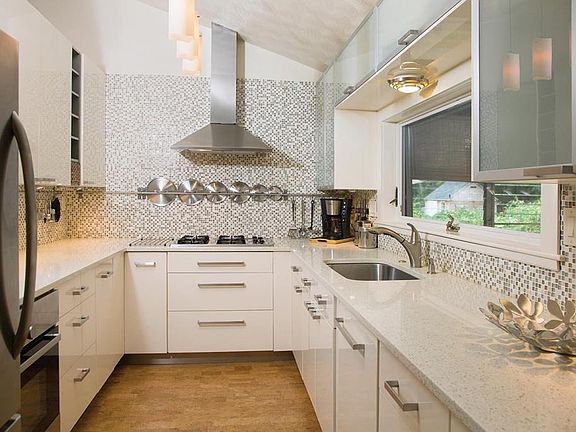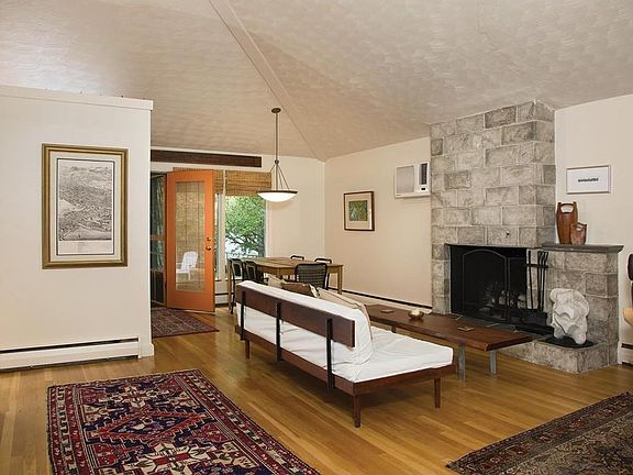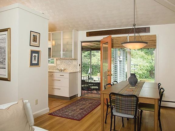 Abutting wooded conservation land, this 1957 Mid-Century Modern home offers an open floor plan with a living/dining area with oak flooring, a fireplace, and access to a charming three-season porch which leads to a lovely yard. The sleek and stylish kitchen is enhanced with geo stone countertops and white cabinetry. Also on main level are three generously-sized bedrooms and a 2016 bathroom. The lower level is partially finished and has great potential. There is a unique carport with two additional parking spaces. The property is close to Harry Downes Field, Robinson Playground, and Jamaica Pond. Convenient to neighborhood markets, coffee shops and cafes. Nearby is Brookline Village, the T Greenline, and Bus #60 and the Medical area, Lincoln School and Brookline High School.