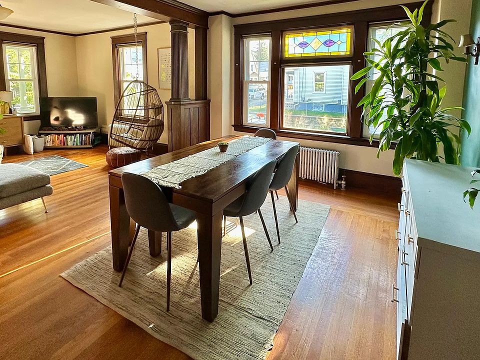 Step into this inviting bungalow full of antique charm, featuring rich dark wood trim, built-in cabinets, and timeless architectural details. The warm, character-filled interior creates a cozy and welcoming atmosphere, perfect for those who appreciate classic craftsmanship. Located just minutes from Johnson & Wales University, this home offers unbeatable convenience to campus and public transportation while still providing a peaceful retreat. Whether you're a student, faculty member, or anyone seeking a home with historic charm in a prime location, this bungalow is a rare find in the heart of Providence. Water, sewer, heat and hot water and electricity are all included. Gas cooking is NOT included.