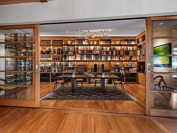 Featuring hardwood floors and bespoke finishes, this impeccable home reflects ultimate style and refinement. The west-facing entertaining area, with five double-height windows and a wood-burning fireplace creates an enchanting ambiance. Classic columns and 13-foot-high ceilings add grandeur to this 4000 sq ft gem.
