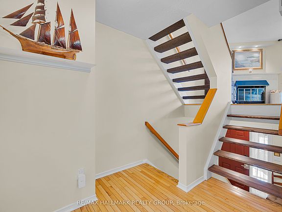 Welcome to 1-60 Greenfield -- Steps from the Rideau Canal and minutes to downtown, this 3-bed, 3-bath multi-level end-unit townhome blends city convenience with rare privacy, all while backing onto trees with no rear neighbours. Inside, the bright U-shaped kitchen boasts newer appliances (2022-2025), stone countertops and backsplash, an induction stove, a corner sink, and a large window overlooking the yard and trees. Natural hardwood runs through the dining and upper levels, complemented by shutters in the dining room. The living room features a fireplace and patio doors to a spacious terrace above the carport - perfect for hosting all season long. The private levels provide flexibility: a primary with an ensuite (corner shower), a skylit 4-piece bath with a jacuzzi tub and updated tile tub surround beside the second bedroom, and a third bedroom at the top, currently used as an additional lounge. The lower level expands the home with a full laundry room, walk-in workshop, storage, and a bonus room ideal as a gym, office, family room, or guest suite. Major systems are updated with a furnace & AC (2018). All this is just a stone's throw to the Canal, with quick in-and-out city access, and surrounded by shopping, dining, and recreation, a rare balance of downtown living and peaceful retreat.