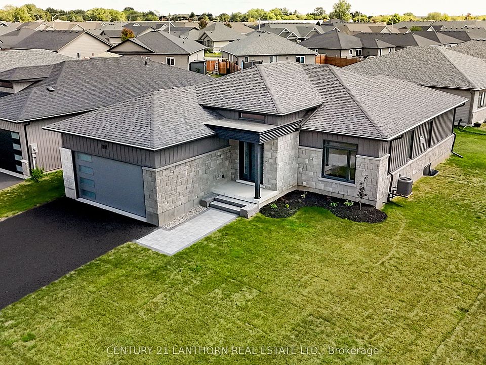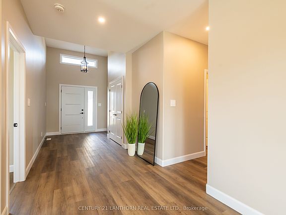 At Frontier Homes, we build homes we would live in, and 60 Hastings Park Drive is the perfect showcase of the Frontier Factor. Nestled in the sought-after Potters Creek subdivision, this flagship model blends modern elegance with thoughtful craftsmanship, designed with family living in mind. From the outside, the curb appeal sets the tone. A paved double driveway leads to a true two-car garage. Interlocking stone walkway and stone-framed steps guide you to a sleek modern steel door and siding composed of steel board and batten that you wont find anywhere else. Step inside the oversized foyer with soaring 12-foot ceilings that flow into the heart of the home. The living room makes a statement with its stone fireplace and natural wood mantle, complete with a TV box for hidden cord setup. A coffered ceiling elevates the space, bringing definition and character. The kitchen is both stylish and functional, featuring ceiling-height cabinets with crown molding, Dekton countertops by Cosentino, elegant pencil shaker cabinetry, under-cabinet lighting, and textured black and gold pulls to tie it all together. A black double sink with matching faucet, an oversized island, and a dedicated bar/coffee area make entertaining effortless. The primary bedroom retreat features a bold feature wall, a transom window, and enough room for a king-size suite with ease. A sliding patio door connects you to the backyard, while the luxurious ensuite offers two sinks, black-trimmed mirrors, oversized tile floors, and a premium ceramic tile shower with hexagon floor detailing. A massive walk-in closet completes the space. Additional highlights include: Premium luxury vinyl flooring throughout, Upgraded trim and pot lights, Oversized windows for more natural light, A large back deck, and An unfinished basement, ready for 2 more bedrooms and your personal touch. Every detail of this home reflects the Frontier Factor; quality finishes, thoughtful design, and timeless style.
