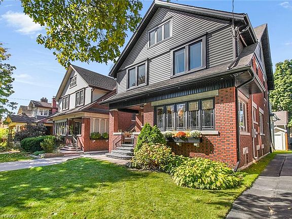 Nestled on a family-friendly street just steps from beautiful Victoria Park and vibrant downtown Kitchener, this charming 4-bedroom home strikes the perfect balance between character and modern convenience. The welcoming exterior hints at the thoughtful updates and well-maintained features you'll discover inside. Step through the front door and you'll immediately notice the gorgeous oak strip hardwood floors that flow throughout, complemented by elegant crown moulding and beautiful wide wood trim that adds a touch of sophistication. The main level offers comfortable living spaces, while a convenient half-bath serves daily needs. Venture upstairs to find three generous bedrooms, including a spacious primary bedroom. The fourth bedroom has been thoughtfully converted into an upper-level laundry room – though it could easily return to bedroom duty if needed. Check out the recently renovated 4-piece bathroom that creates a spa-like retreat, perfect for unwinding after busy days. Don't miss the unspoiled loft space, ideal for a children's playroom, home office, or additional living area – let your imagination run wild! Practical features include separate side and back entrances, plus laundry hookups in the basement for added flexibility.?The real showstopper? A massive 749 sqft detached garage measuring 32ft 8in X 23 ft and housing a self-contained studio complete with its own furnace (2022) and air conditioning (2025). Whether you're an artist, entrepreneur, or just need extra space, this versatile outbuilding delivers endless possibilities. Some of the many updates include: windows, eaves & siding, driveway, heat pumps, boiler and softener. Reach out for the full list. This home is truly beautiful - book your showing today.