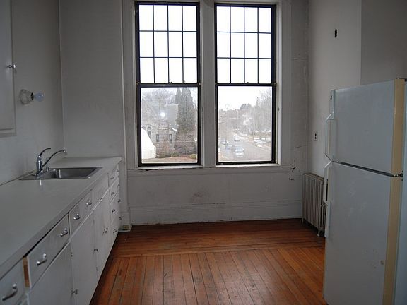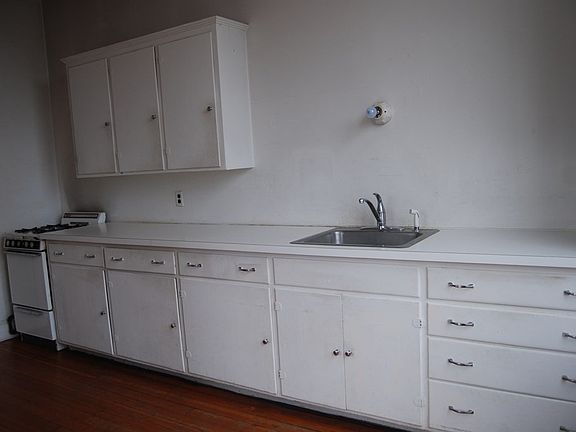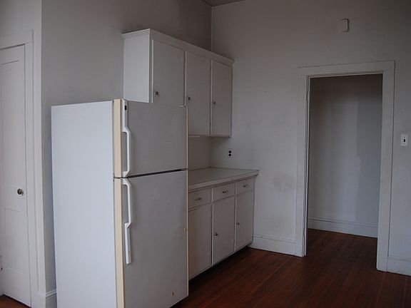 Bright and sunny studio apartment with high ceilings on the third floor. This apartment has a small kitchen and a large room that would serve as a bedroom/living room. Plenty of closet space. Pretty hardwood floors and living room freshly painted in a nice neutral color. Utilities not included. Coin-op laundry in the building. One parking space provided behind building. Available immediately.