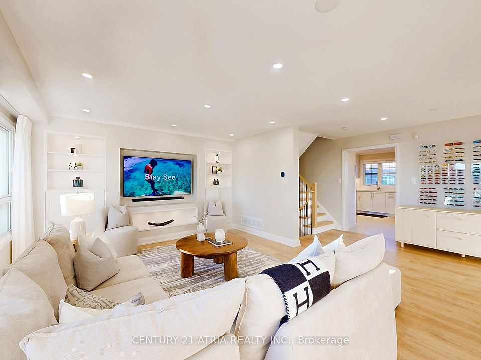Experience the pinnacle of luxury living in this stunning executive townhome + Premium end-unit home (just like a semi) + RARE 25 ft frontage + Completely renovated from top to bottom; feels like new + 1876 sq. ft of luxury living space boasting SMART feature home + 3+1 bedrooms + 3 washrooms + Separate entrance to lower level (ideal space for a guest suite or potential income) + Flooded with natural sunlight + Bespoke newly renovated kitchen including brand new cabinetry, knobs, undermount lighting, light fixtures, tile floors, crown moulding, undermount kitchen sink overlooking the backyard (2023) + Upgraded stair railing and cast iron pickets (2023) + Floor and trims changed (2023) + New roof and vinyl capping on exterior window and porch cover (2024) + Steel front door and back exterior door changed in 2024 + Newer garage door and smart opener (2021), bathrooms renovated (2023-2025), Smooth ceiling with pot lights throughout the 2nd floor + Premium vinyl floors throughout (2023) + Light switch dimmers + Freshly painted walls and trim + Renovated laundry room (2025) + Custom built-in media wall unit + Beautiful manicured yard + Triple pan windows (extra insulation) + Security camera x 3 + Interlocked front and backyard + Smoke and carbon monoxide replaced on all levels + Conveniently located! 2 min walk to Rylander Plaza (Canadian Tire, grocery store, Shoppers Drug Mart, RBC, Dollarama, Tim Hortons) + 2 minutes to Starbucks and Lamanna's Bakery, and clinic + 1 km to Highway 401 + 10 mins to Scarborough Town Centre Mall and the Toronto Zoo + 3 min walk to St. Dominic Savio School + 7 min walk to Rouge Valley Public School + 5 min walk to closest bus stop + 10 min to Rouge Hill GO train station + 60 Huxtable Lane is the perfect blend of modern elegance and convenient living!