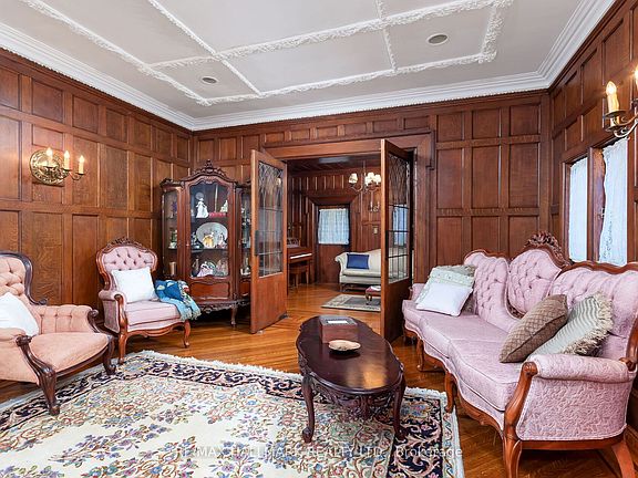 Experience Timeless Sophistication and Modern Comfort. Step into an extraordinary Georgian-inspired residence that seamlessly blends classic elegance with contemporary comfort. Rich in architectural integrity and timeless character, this stately home offers a truly unique and refined living experience. From the moment you enter, you are welcomed by a grand central staircase an architectural masterpiece that ascends gracefully to the third-floor master suite. This private master retreat is a sanctuary of calm, featuring soaring cathedral ceilings, a spa-like ensuite with a luxurious soaker tub, and a light-filled ambiance that promotes relaxation and renewal.The second level offers three generously sized bedrooms-ideal for a growing family or hosting overnight guests. A standout feature on this floor is the sun-drenched corner office, boasting panoramic west-facing views and abundant natural light. Whether you're working from home or seeking a creative haven, this inspiring space is a rare and valuable find. On the main level, entertain in grand style within the expansive living room, adorned with professionally refinished woodwork restored in Montreal-radiating warmth and timeless charm. The formal dining room, complete with a custom built-in hutch, provides the perfect setting for elegant dinner parties and cherished gatherings.The retro-chic kitchen, full of character, offers ample space for culinary pursuits, while leaded-glass French doors lead to a cozy parlour-a welcoming retreat ideal for an evening nightcap or a quiet moment with your favorite book. Outside,Mature trees and lush landscaping frame a beautifully appointed backyard-perfect for morning coffee, or relaxed evenings under the stars. Adding even greater versatility, the home includes a fully self-contained one-bedroom apartment in the basement, complete with above-grade windows/full ceiling height. Whether used for extended family, guests, or potential rental income, this space is a valuable asset!