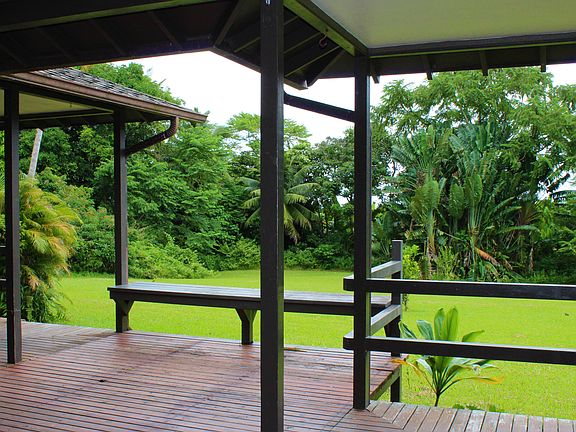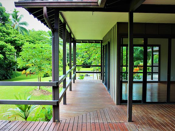 Embraced by beautiful foliage, fruit trees (mango, avocado, papaya, citrus, soursop, mango, breadfruit, coconut, etc.,) and spaciously laid out, this peaceful Hana 4 bed 2 bath home invites calm and comfort. Must see, newly built, 3000 sqft. separate additional garage with high pitched ceilings yields limitless opportunity for a work space, storage and and an extra outside Shed too! A lava rock fireplace, original Koa cabinets throughout, an Ohia post and window lined catwalk hallway add to this unique architecture. Kitchen includes Tiger Eye granite counter tops, views and a convenient Laundry room. Open high ceilings, scenic dining area spacious relaxed living space are complimented by a fireplace and sprawling views. A beautiful fence and gated drive way invites you! Minutes to Hana's famed beaches, town and sights.