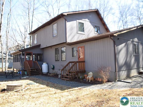 This three-bedroom, two-bath home on a wooded, level lot is located blocks from the primary amenities in Towamensing Trails. The current owners have maintained and cared for this home but are ready for another home in the community. The first floor offers an open-concept main living area with new flooring. The kitchen has some newer appliances and provides access to the screened-in porch, which overlooks the backyard and offers a great place to enjoy a meal, read a book, or sit back and enjoy the local fauna walking through the backyard. The first-floor bedroom is currently used as a den and has a nice-sized attached bath. A large laundry room at the rear of the garage offers a large storage closet. The upper level has two nicely sized secondary bedrooms, a full bath, and a loft. The third bedroom has direct access to the hall bathroom. Significant improvements and updates to the home include a proper vapor barrier in 2018, a total rework of home plumbing pipes with Pex in 2018, a whole house water filter, and a reverse osmosis filter in 2018. In May 2020, a new shed was installed in the rear yard, and in June 2020, a whole roof replacement with two venting skylights was completed. In March 2022, new laminate flooring was installed in the first floor's kitchen, dining, and living room areas. In June 2024, the water heater was replaced, and in September 2024, an Iron/Sulfur filtration filter was added to the water treatment system. End of May mid-June settlement date needed.