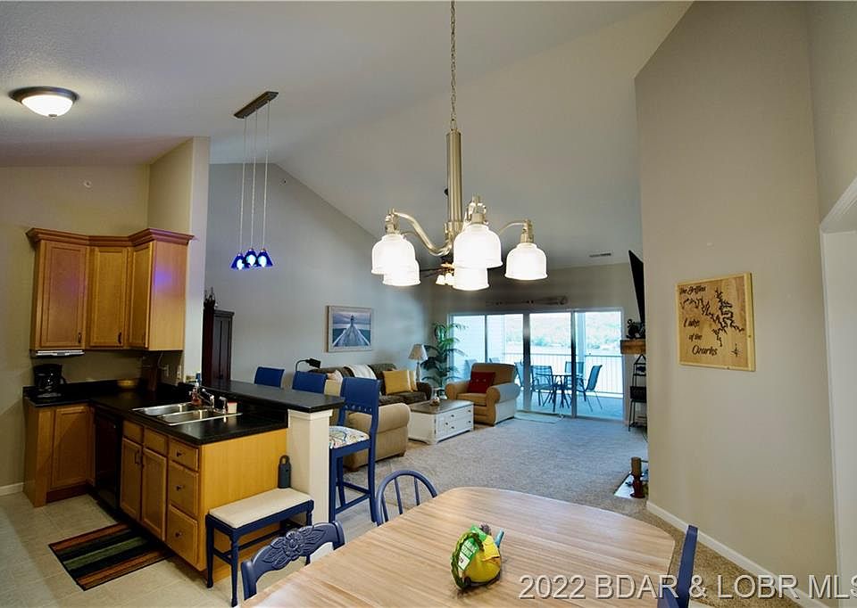 Talk about a total Lake package! This beautiful top floor unit is located in the gated community of Isla Del Sol on the 4MM of the Lake of the Ozarks. You can take the elevator or walk up the stairs to your top floor unit, when you walk in you are greeted with an open floorplan that has huge vaulted ceilings. The living room has a double slider that opens up to the concrete screened in deck which over looks both the entire cove as well as the main channel, the views are definitely the selling point!! It's a 3 bedroom, 2 full bath unit that has been extremely well maintained. It comes with a garage as well as a 12x40 slip and comes fully furnishes! It's super hard to find a large slip anywhere at the lake but throw a garage in the mix and this is truly a gem! The seller has another 16x40 slip that is available to purchase for additional $. Call today to take a look, this one will go quick!