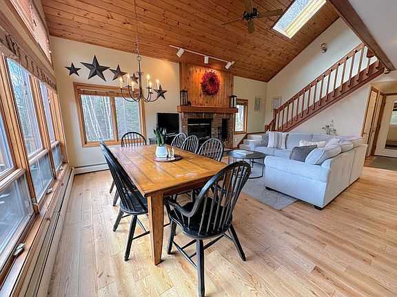 Perched on a ledge across from the Bretton Woods ski area, New Hampshire's largest resort, this home welcomes you with a warm, open, and spacious layout. Enjoy the outdoors on the large deck and backyard, or get cozy by the fireplace on rainy days. The unit has been updated with air conditioning, new hardwood floors, and new beds in each room, offering ample space for your family to feel at home. The kitchen is updated with black cabinets and stainless appliances, stocked for all your cooking needs, and offers both a Keurig and drip coffee maker, granite countertops, and a breakfast bar. The dining and living area is a sunny open concept space with a large dining table that seats 8 and comfortable furniture surrounding the wood-burning fireplace. The lower level offers a second living area with a table for 6, TV, and large sectional. The outdoor area includes a back deck accessed from the main level living area and access to the flat backyard from the lower level. A grill is off to the side of the house and accessible from the upper deck on the main level. Discounted tickets to the world-famous Cog Railway and 25 pool and gym passes at the Mountain View Grand Resort and Spa are available. The pool and gym pass program is subject to availability and any restrictions outside of our control that may be set in place by the resort. Located just down the road from the Mount Washington Hotel and the Bretton Woods Ski Area base, you'll be in the middle of endless recreational options, from skiing and snowshoeing to golfing, mountain biking, rock climbing, and hiking. The area attractions include the Cog Rail, Santa's Village, Franconia Notch State Park, Storyland, and outlet shopping in North Conway. This house is located in a quiet, family-friendly resort area. Our neighbors and visitors are here to enjoy the majestic quiet of the mountains. This home is not the right setting for a party or for groups looking to be loud and boisterous. All association rules and especially quiet hours from 10 pm to 8 am, parking limitations of 2 vehicles at the unit with others at overflow, and no trash left outside must be followed. Propane and charcoal grills or any form of open fire are strictly forbidden within 10 feet of the building. Electronic noise monitoring is in use, the devices only monitor noise levels and are 100% privacy compliant. Violation of any of these rules may subject your party to immediate removal without any refunds. Guests are responsible for any fines levied by the association or the municipality for violation of local regulations. Unauthorized early arrivals or late checkouts are subject to a $100 per hour fee. Unauthorized pets or guests are subject to a $300 fee and immediate termination of your stay with no refunds. A $100 fee may be imposed for violations of the quiet hours rule. No smoking inside the unit, with a $250 fee for violation. We are in Bear Country, so no trash or food is to be left outside at any time, with a $100 fee for violations. The home offers free high-speed Wi-Fi and TVs equipped with Roku. A laptop computer is not included.