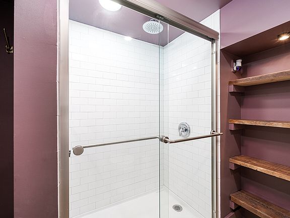 Recessed lightingOriginal wood shelving unitsCustomized kitchenette areaModernly designed bathroomSpacious bedroomCustom built privacy gateCozy outdoor area