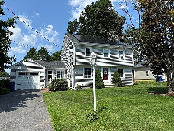 Great neighborhood. Lets start with the outside: the 11,326 square foot lot has a fenced in backyard with a large deck. Half circle driveway is convenient for turning around and for extra parking. There is a breezeway but it's heated and big enough to be a second family room. So many possibilities for that room. Front to back living room and the kitchen is open to the dining room. Hardwoods throughout the home. All three bedrooms are on the second floor along with the full bathroom. Home has solar panels. Great location. Close to R .Martin elementary school. Close to all the amenities of Fall River Ave, but tucked away in a great neighborhood.