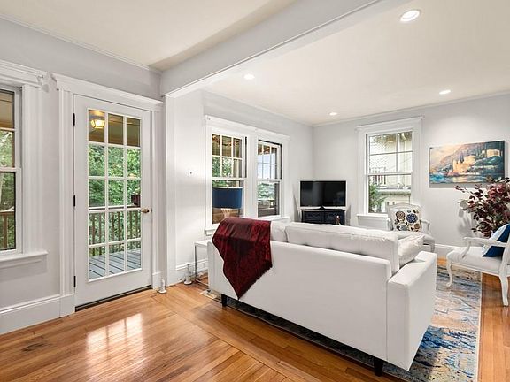 A fabulous Center location, seasonal views of Spy Pond from the large front porch & exclusive use backyard with patio make this a special offering! This 2nd level unit features a large living room with space for a piano or 2nd home office, dining room with gorgeous leaded glass china hutch, beautiful kitchen with peninsula, new stainless stove & granite counters. There are 2 spacious bedrooms, bathroom, laundry room & back porch.The upstairs offers a huge master bedroom with bath, double closets & home office. The walk out lower level has a large family room, storage/work shop room, updated systems, garage & driveway parking. All this in the heart of Arlington Center with great bus service to Harvard Sq, close to vibrant Capitol Sq's great shops & restaurants & best of all steps to the bike path for a short walk to Alewife & great access to all major routes!**OH Fri 12 to 1pm, Sat 12-1:30pm, Sun 1-2:30 (Aug 7/8/9th)