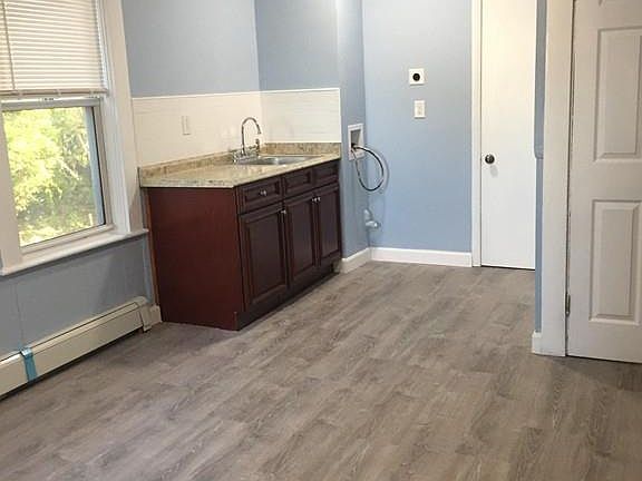 Deleaded..Available for rent..immediately move in date! Bright & sunny. First floor two spacious bedrooms, newly painted large eat-in-kitchen with new floors, cabinets, counter top, laminated wood floors in living room and bedrooms, laundry hookups in unit, street parking. Rear deck.