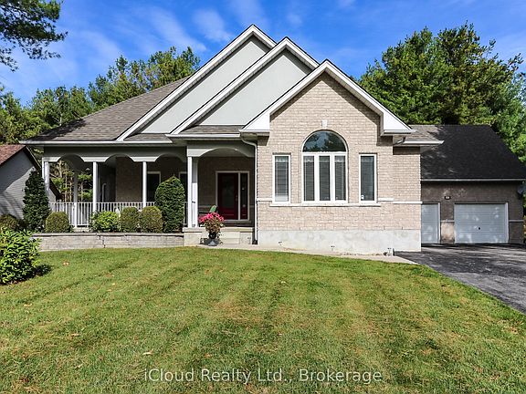 Welcome to this beautiful and spacious bungalow located in the highly sought-after Wasaga Sands community. Offering 3 bedrooms and 3 bathrooms, this home boasts over 2,100 sq. ft. of main floor living space designed for comfort and functionality.Set on a generous half-acre lot, the property features a serene backdrop of lush, mature trees - perfect for enjoying privacy and nature. Relax or entertain on the large backyard patio, or start your mornings on the charming covered front porch with your coffee in hand.Inside, you'll find a bright, open layout with plenty of windows that bathe the space in natural light. An all-season sunroom offers a cozy retreat year-round, ideal for relaxing or hosting guests.The double car garage and extra-wide driveway provide ample parking for family and visitors. The partially finished basement adds another 1,3300 sq. ft. of versatile space, including a sitting area, pool table room, workout room, and a full bathroom-making it perfect for entertaining or extended family living.This home is the perfect blend of elegance, space, and comfort in a peaceful, prestigious neighbourhood.