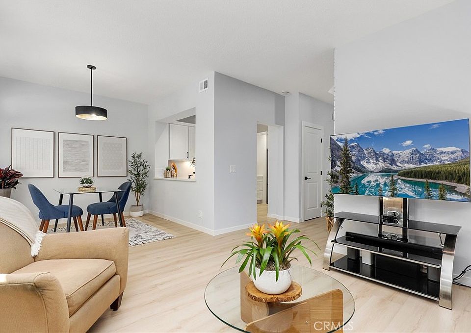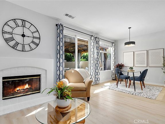 Welcome to 60 Meadowbrook, an immaculate home in the heart of Aliso Viejo. The inviting family room features a stylish accent wall and cozy fireplace, seamlessly opening to the dining area and kitchen. The kitchen boasts white cabinetry, quartz countertops with matching backsplash, stainless steel appliances, and direct access to the two-car attached garage with an extended driveway for extra parking. Sliding glass doors lead to a spacious and private backyard with low-maintenance artificial grass, perfect for entertaining or relaxing. A beautifully remodeled powder room completes the main level. Upstairs, the primary suite offers vaulted ceilings and a remodeled ensuite bathroom with a quartz vanity and walk-in shower. Two additional bedrooms share a remodeled full hall bathroom. Centrally located near Aliso Viejo Town Center, the 73 Toll Road, scenic trails, award-winning schools, and just a short drive to the beach—this home truly has it all!