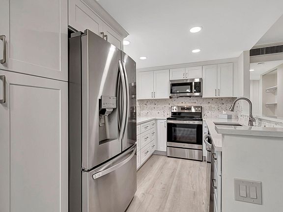 Completely remodeled, electrical panel,AC and water tank 2022 partial impact windows, new flooring,lighting Lakeview2 bedroom, 2 bathroom condo. this is Kings point at its finest, this immaculate 1st floor panoramic lakeview view condo. Kitchen features quartz counters, custom cabinets with pullouts and soft close doors and drawers. Luxury vinyl plank floor throughout. 2 full bathrooms are renovated with exquisite vanities and counters, both have a walk in shower. Rebuilt lanai. Partial impact glass. Monaco section of Kings Point, featuring amenities like two 18-hole golf courses, swim, tennis, exercise studio, and more. Ideal for a vibrant 55+ community lifestyle with various activities and entertainment.