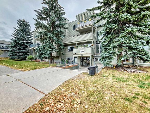 OPEN HOUSE SUNDAY, OCT 05 FROM 2-4PM*****This home is in a tremendous location, close to all amenities including Signal Hill Centre with Superstore, drug stores, Winners, Michaels, restaurants, a theatre, and convenient public transportation. It is only minutes from Sarcee and Stoney Trail, providing quick access throughout the city. Rare to find a Corner condo that offers over 1080 square feet for this price. Unit is well-cared-for and overlooks a beautiful treed park, creating a private and inviting setting . The large foyer provides plenty of space for shoes, coats, and guests to comfortably arrive. Inside, there is a generous storage room measuring four by nine feet, offering an abundance of extra space. The four-piece bathroom features a spacious counter and built-in laundry facilities with additional cabinets above the washer and dryer for storage. The kitchen is impressive with ample cabinetry and counter space, accented with white appliances. The L-shaped living and dining area offers plenty of room for a large table and extra space in the living room with a wood burning fireplace as accent. A sliding patio door opens to a large, covered deck with park views. The master bedroom is exceptionally spacious, complete with a walk-in closet, room for a sitting area, and numerous west-facing windows that fill the space with natural light. A second large bedroom is ideal for guests or a home office. An assigned parking stall, number 79W, is included. This building has seen many recent updates and planned improvements, including updated windows, scheduled painting of Building 60 in May 2026, new carpet in the common area this month, replacement of makeup air units in 2025, and fibre-optic network service being added this year. This condo offers exceptional value with its size, layout, and location. It is truly a property you will want to see.