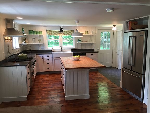 This beautifully restored circa 1830's home just off the West Brookfield common, blends 21st century living with antique character. It has been updated with integrity and craftsmanship and features a brand new kitchen with quartz countertops, new cabinets, commercial gas Viking stove, farmer's sink, and original wide pine flooring. Lots of natural light fills the open floor plan which allows for comfortable living and easy entertaining. Three original fireplaces as well as a new gas fireplace add comfort and elegance. This home features two brand new full bathrooms with walk-in shower and deep Jacuzzi tub, new laundry, all new electrical, plumbing, insulation, and new water heater. Windows and doors are energy efficient. Property includes spacious two car garage. The front porch is a perfect spot to relax and enjoy the view of the town fountain and listen to the summer band concerts.