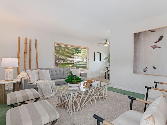 Rarely available single-level 2 bed/2 bath end unit with an attached gar in the Pebble Creek complex! This bright & inviting home is located in the Foothill Elementary School attendance area and is close to a scenic bike path to the beach/UCSB, a dog park, shopping, & more. Fresh interior paint, smooth ceilings, updated kit appliances & dual-pane windows create a clean, refreshed feel. The spacious living area opens to a large private patio perfect for indoor/outdoor living & entertaining, and has gated access to additional assigned parking. The primary suite has a sliding door to the back patio area. Off street parking also includes a driveway space as well as 1-car gar, which is home to the washer/dryer. Priced to reflect the opportunity to add your own flooring choices. Low HOA dues!