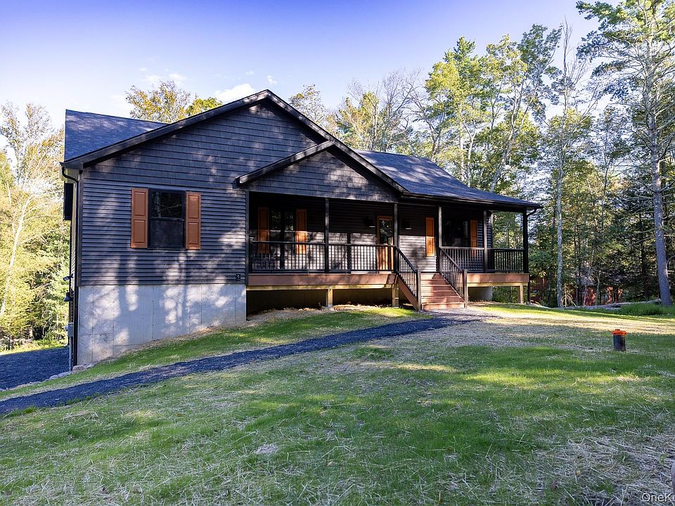 New Construction in the Town of Deerpark (ORANGE COUNTY). The Veranda style ranch will feature 3 bedrooms, 2 full baths, laundry room, cathedral ceilings, hardwood floors, cozy fireplace & central a/c. Custom kitchen boasting granite/quartz counter tops & breakfast peninsula with seating overhang. Retreat to your master bedroom with walk in closet & private bath complete with double vanity. Spray Foam Insulation, Back deck, 2 car garage and full unfinished basement included. Come be part of the Catskill Revival and enjoy nearby Bethel Woods Center for the Arts, Kartrite Indoor Water Park, Resort World Casino or take in nature. Additional Information: ParkingFeatures:2 Car Attached,