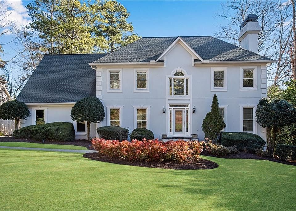 Fantastic traditional home in Sope Creek/Dickerson/Walton school district! Home is situated on a private lush lot w/ custom built saltwater pool & is located on a cul-de-sac street! Exterior has fabulous curb appeal w/ professional mature landscaping, sod, level driveway, & 2 car garage! Open the front door to the 2-story entrance foyer w/ wrought iron railings & balcony! Dark stained hardwood floors throughout entire main! Separate formal dining room to your left connects you to the kitchen. Super spacious sunken family room has a cozy fireplace, wet bar & shelves, & also a double glass door to the stunning back deck. This deck is the place to entertain w/ infinity views overlooking the entire backyard & pool! Recently upgraded eat-in kitchen features new white shaker cabinets, sleek SS appliances including a new sink, gorgeous white veined quartz countertops w/ matching backsplash, and a walk-in pantry for all your cooking needs! Countertop with waterfall edge has overhang for bar seating that overlooks the breakfast room. For added convenience directly off the kitchen is an office/study area with more cabinets for storage, the back staircase, the entrance into the garage, & a great sized separate laundry room. Also off the kitchen is a sunroom with huge windows that overlook the backyard w/ another door out to the upper back deck. There is a half bath on main for easy guest access. Make your way upstairs to find the bedroom quarters & bamboo hardwood floors throughout upper level. The primary suite has a trey ceiling, two separate bathroom vanities, corner soaking tub w/ picture window, walk-in shower, & deep walk-in master closet that continues into the fifth bedroom that can easily be converted back (if needed). Bedrooms two and three share a full connecting bathroom and bedroom four has access to the full hall bathroom. From the main floor head to the terrace level that has new LVP flooring, a fifth bedroom, another full bathroom, two additional living room/media/rec rooms, and a mudroom with walk-out access to the covered deck. Resort-like backyard features pool w/ stack stone waterfall, concrete basketball court, steppingstones, level grassy area, and all with access to the multi leveled covered & uncovered back deck areas along with stairs up to the driveway!