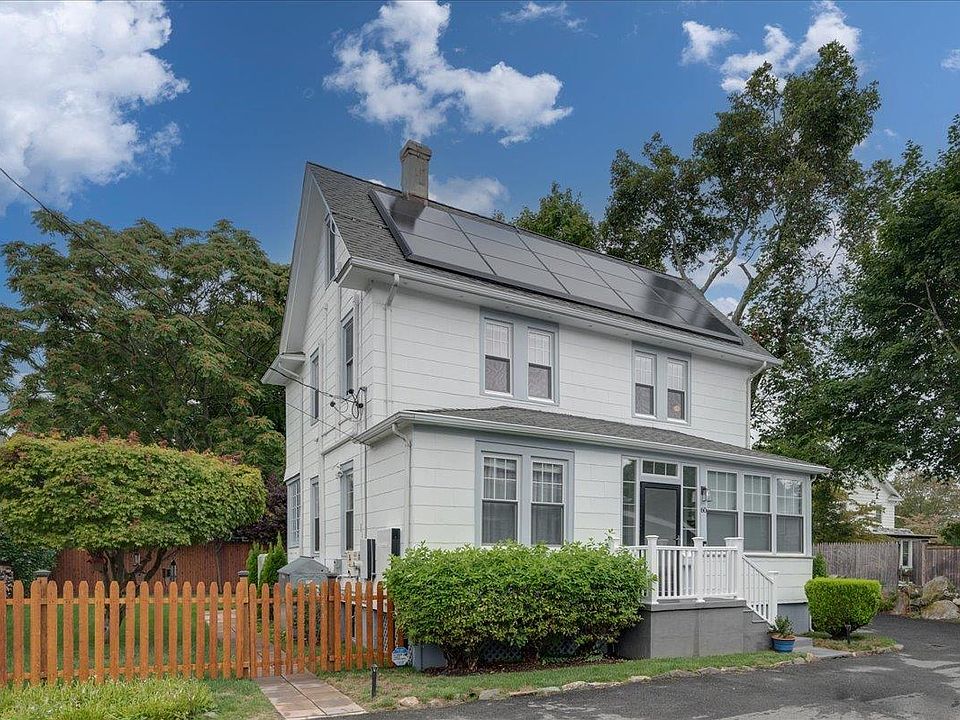 Welcome to 60 Orchard Avenue nestled in the vibrant community of Rye! This renovated colonial-style home offers a blend of modern upgrades and timeless appeal. Offering 3-bedrooms, 1.5-bathrooms, this house has been meticulously updated to provide a comfortable living experience. Enter through the heated enclosed front porch, into a welcoming foyer, leading to a living room adorned with built-ins. The renovated kitchen features stainless steel appliances and quartz counter tops. The dining room includes bi-fold folding doors. Designed with energy efficiency in mind, boasting new windows, central air conditioning, and heating systems, all powered by state-of-the-art solar panels. Hardwood floors throughout, updated electrical and lighting, new washer and dryer, alarm system and Ring camera set up, and new electrical vehicle charger. New landscaping, paver patio, cedar fencing, Belgium block edging and newly paved driveway. Ideally situated, this house is a quick walk to town, train station, and shopping. With too many upgrades to list, this house offers a perfect blend of smart living and classic comfort, with every detail thoughtfully designed to enhance your lifestyle. A true GEM!