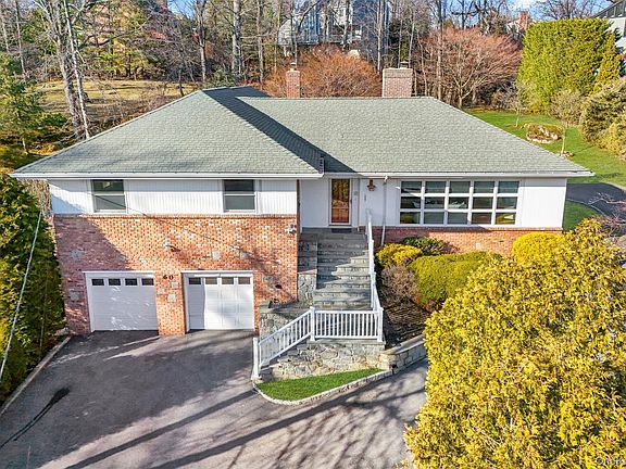 Welcome to 60 Overhill, a sun-filled split-level residence set on a park-like property in a prime New Rochelle location, just steps to the Leatherstocking Trail and walking distance to schools. Sited on two tax lots totaling approximately .72 acres, this 3,761 sq. ft. home offers exceptional space, privacy, and flexibility, with three bedrooms, three full baths, and a powder room, plus a finished lower level that previously housed a fourth bedroom (on file with the city). The main level opens to a welcoming living room with a wall of windows, exposed white brick, and a wood-burning fireplace, flowing to a formal dining room and an updated kitchen with center island, skylight, ample counter and cabinet space. A spectacular family room with vaulted, wood-beamed ceiling and abundant natural light overlooks the expansive grounds. There is a primary suite featuring two closets and an en-suite bath, two family bedrooms with ample closet space and a hall bath. A home office area, powder room, convenient main-level laundry, and access to the back patio complete the floor. The lower level offers versatile recreation or gym space, with room for a 4th bedroom, a full bath, second laundry area, interior access to the two-car garage, and walk-out access to a lower patio. Outdoors, upper and lower patios and a sweeping yard create an ideal setting for entertaining, while thoughtful upgrades including a heated two-car garage with EV charger and a whole-house generator add everyday comfort and convenience—an exceptional opportunity combining acreage, light, and livability.